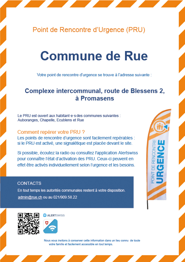 En cas de catastrophe, de situation d’urgence ou de pénurie, la population doit pouvoir obtenir toutes les informations nécessaires et trouver l’assistance le cas échéant. C’est pourquoi le canton de Fribourg avec ses communes met en place un concept de points de rencontre d’urgence (PRU), permettant de pallier ces problèmes. Les PRU s’intègrent dans un concept plus global de protection de la population à l’échelon national.